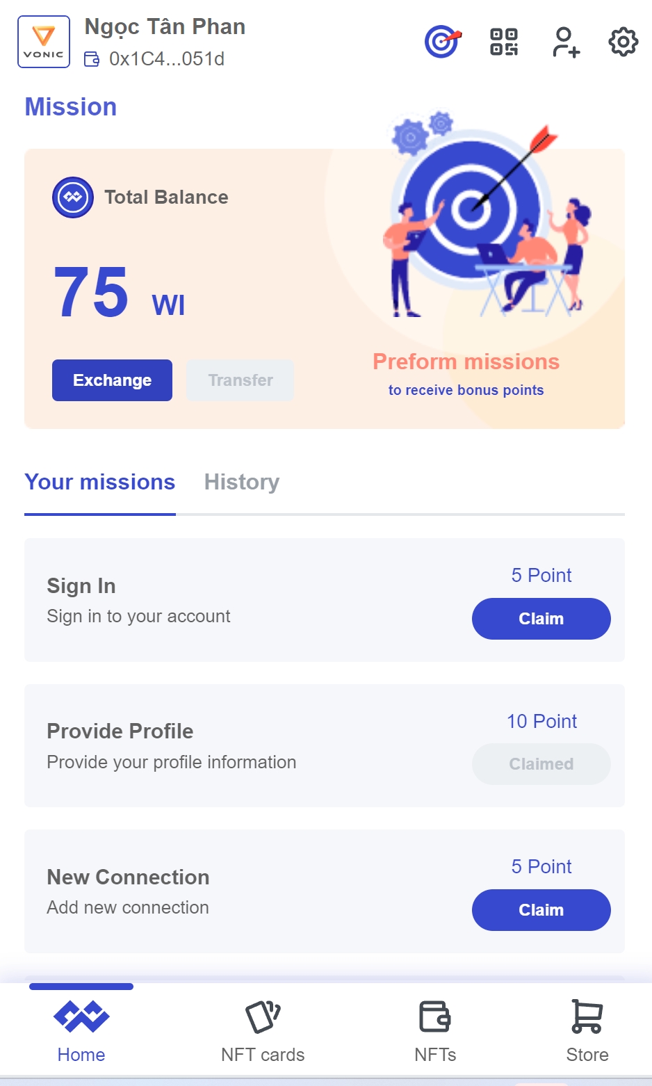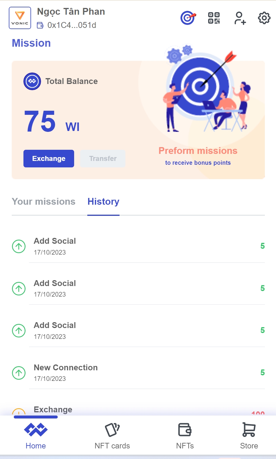 User can use WI to transfer to other users, minimum WI balance to transfer is 300 WI (tax 10%)
